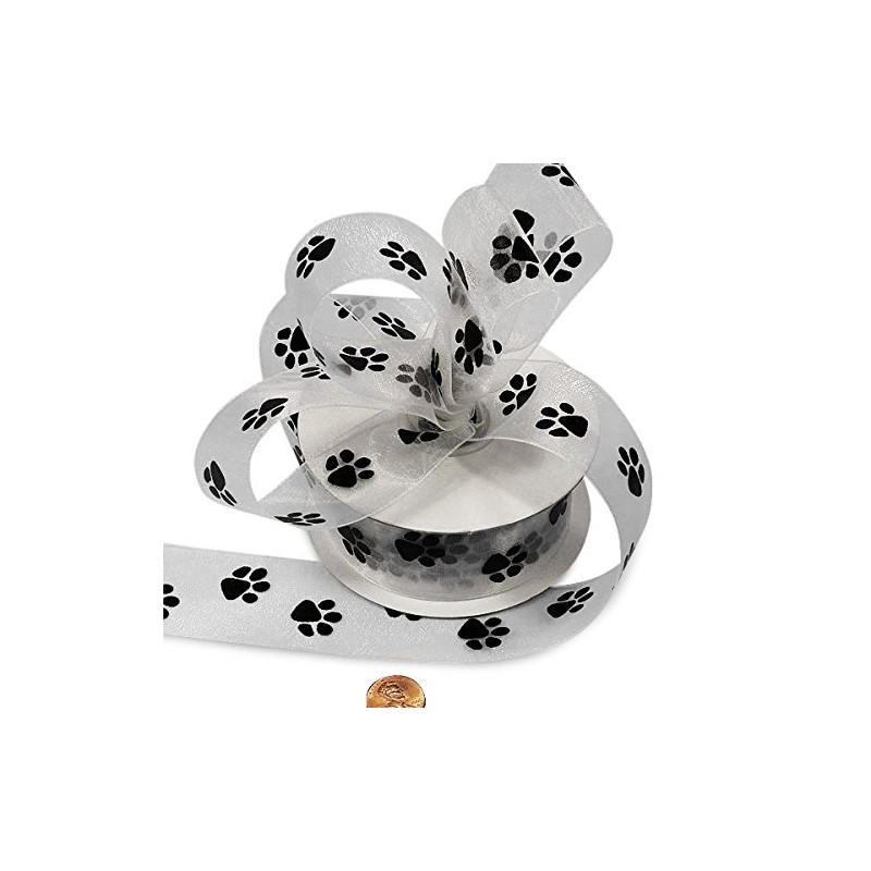 White Sheer Paw Prints Ribbon 1 1/2" X 25 Yards