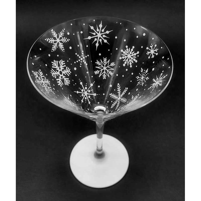 White Snowflake Martini Glass - Hand Painted - Winter Snow Theme Cocktail Gasses - Christmas Party Decor