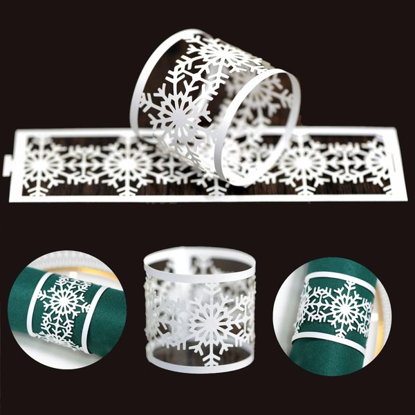 White Snowflake Paper Napkin Rings Winter Christmas Disposable Napkin Holder for Wedding Party Dinner Table Decor,Special Events,Catering Services, Christmas, Wedding,Party Decoration (60 Pcs)