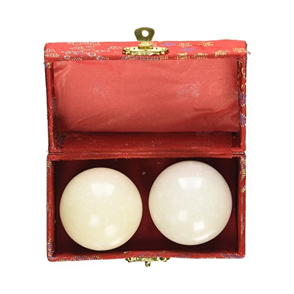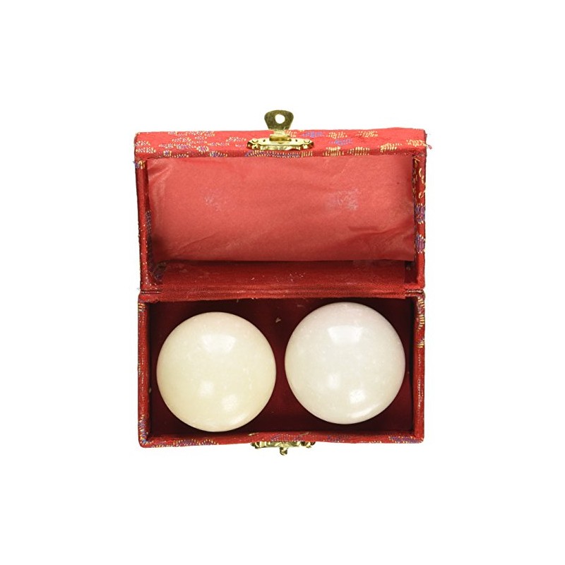 Asian Home White Stone Chinese Massage Balls - Hand Massage, Stress Relief, 2.5" Diameter