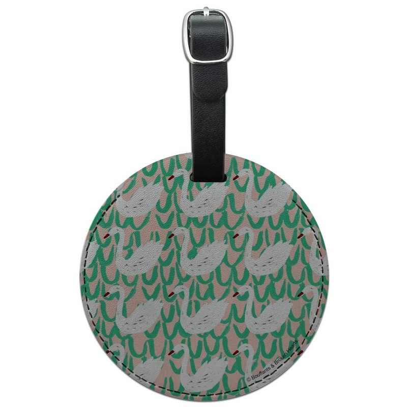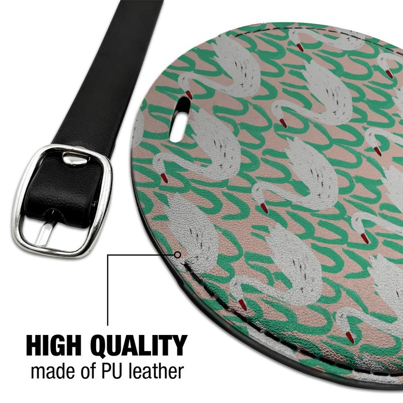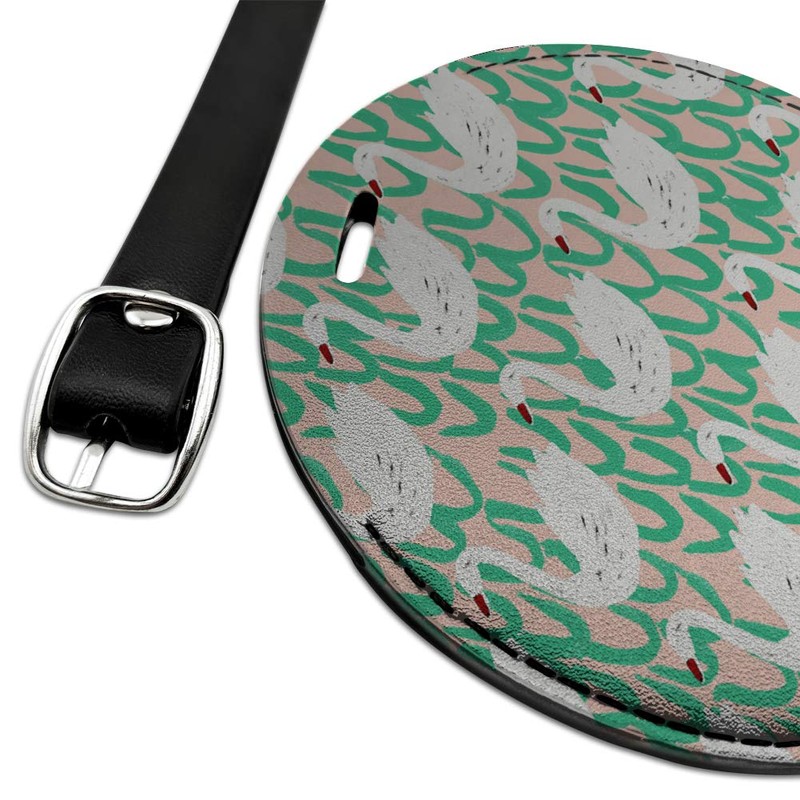 White Swans Swimming Pattern Round Leather Luggage Card Suitcase Carry-On ID Tag