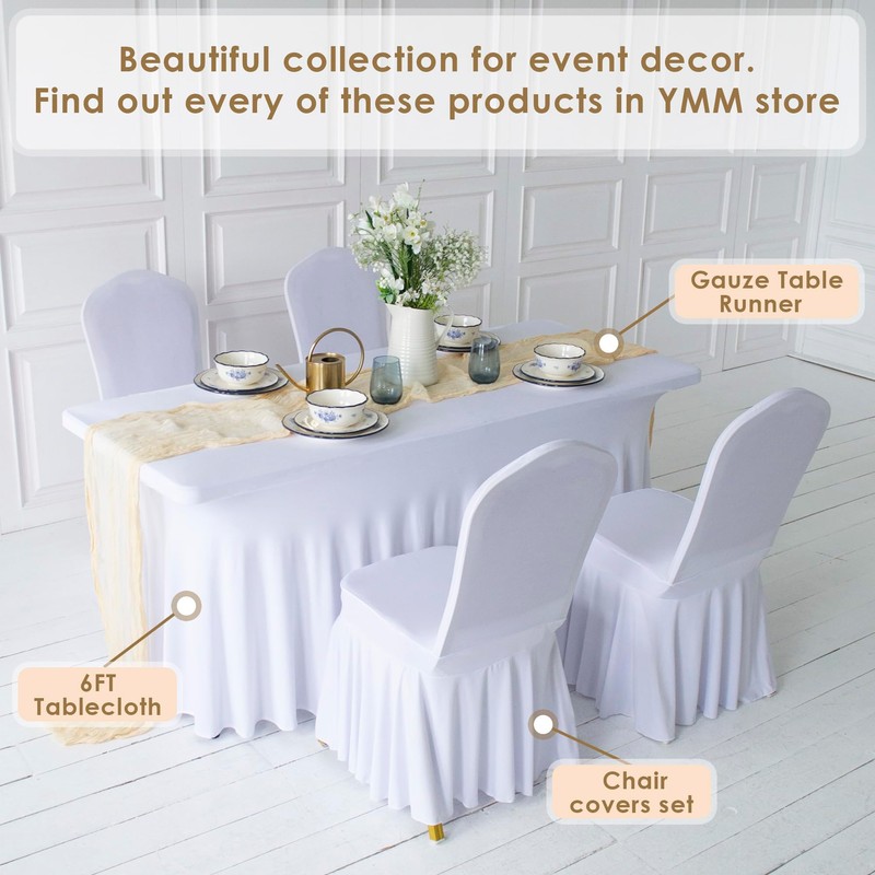 - Unique design. Your Magic Moment 2-in-1 spandex tablecloth - a white fitted table cover and table skirt combined in a single piece. Its unique fitted design ensures a perfect fit for desk and tables, while simultaneously functioning as an elegant table skirt to enhance the overall appearance of your banquet or event table. Our fitted tablecloth is specifically designed to save you time and simplify the decoration process, making banquette table decoration look elegant and neat.