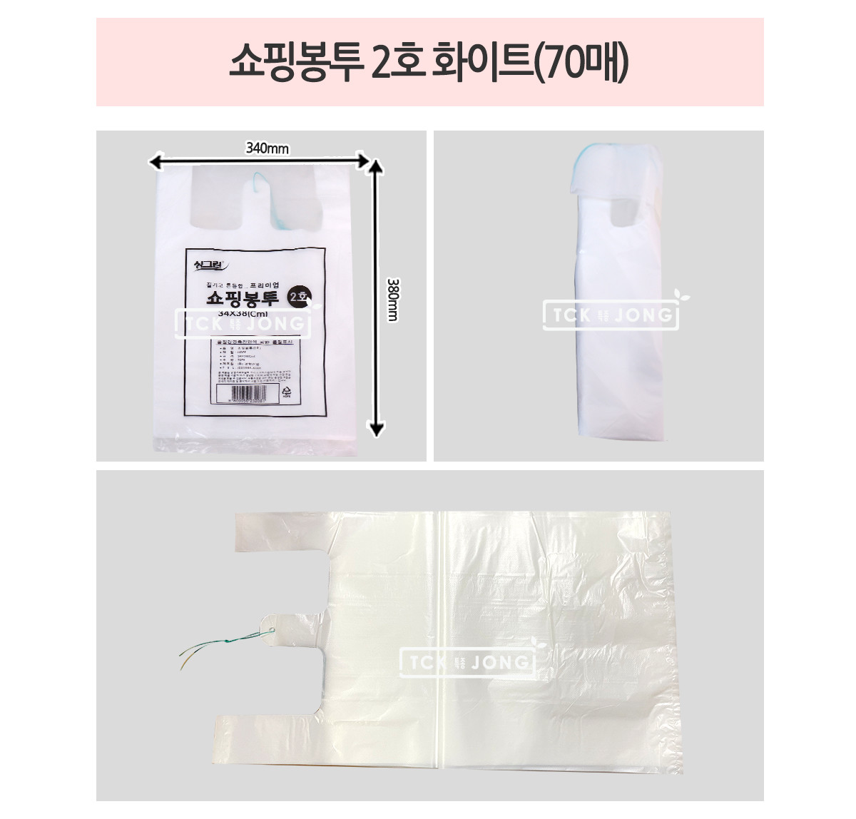 White Vinyl Shopping Bags (No. 2, 70-Pack) 34x38cm 3ea
