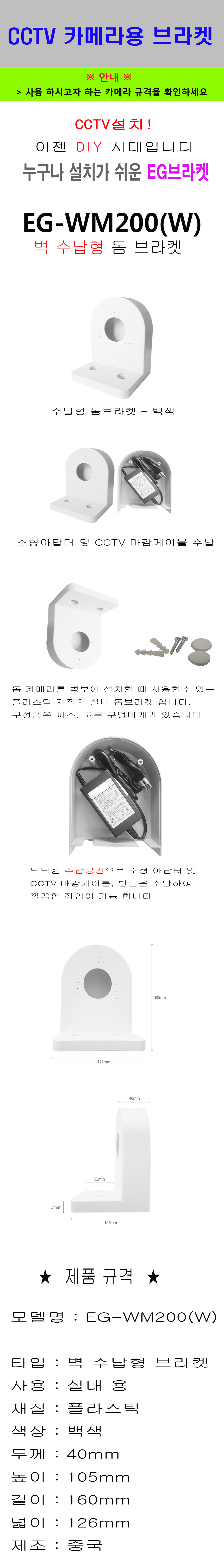 White Wall-Mountable CCTV Camera Bracket with Storage WM200 2ea