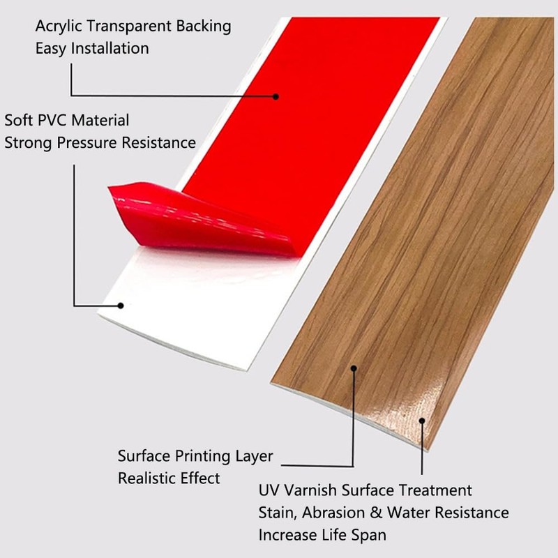 White Woodgrain, Flat Laminate to Tile Threshold Bar, PVC Transition Profile, Self-Sticking Vinyl Edge Trim for Floor Gap, Carpet to Floor Seam Joining Strip
