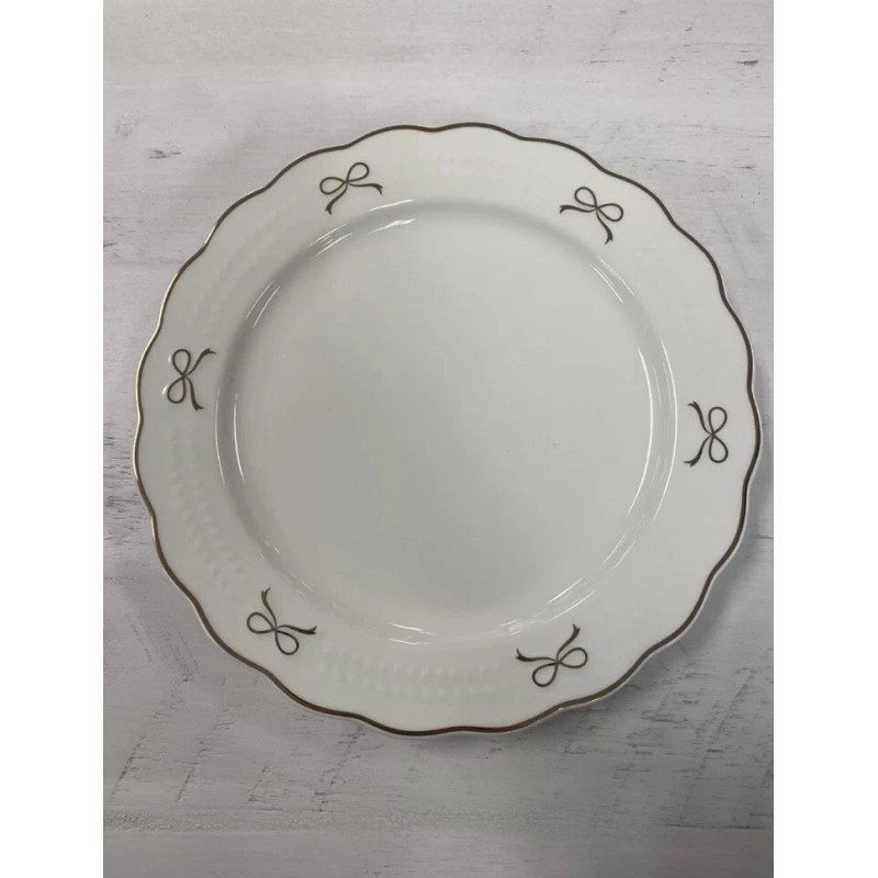 White Yedi GOLD BOW Side Plates Set of 4 Ceramic 8in Holiday Glam White New