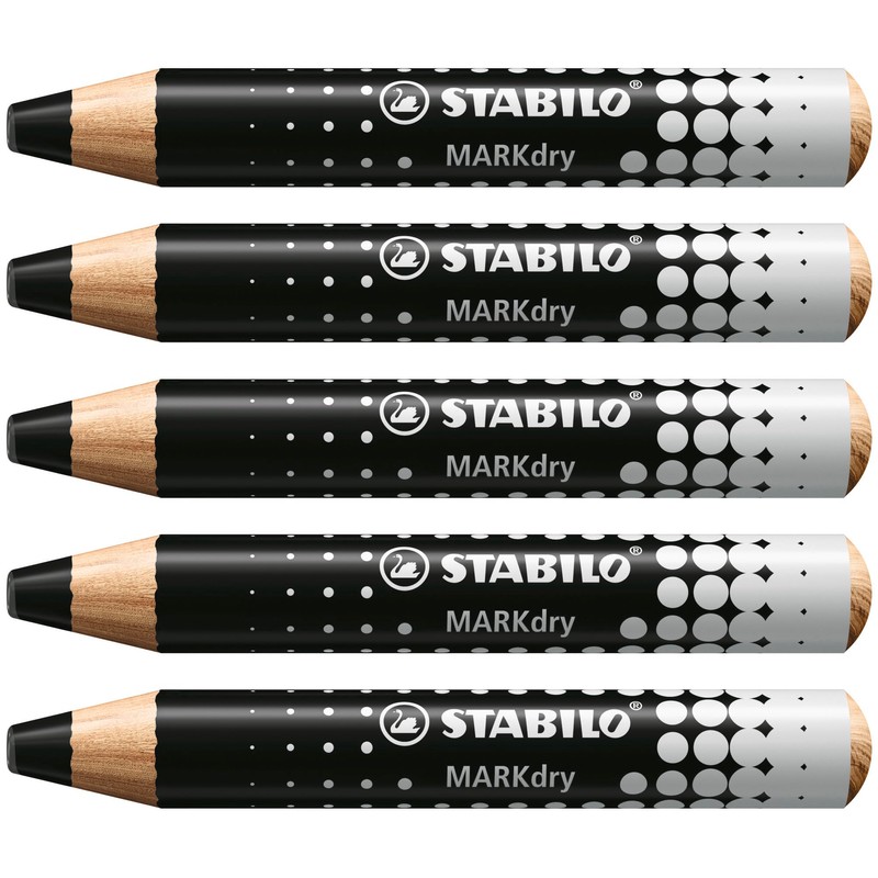 Whiteboard and Flipchart Markers - STABILO MARKdry - Pack of 5 - Black