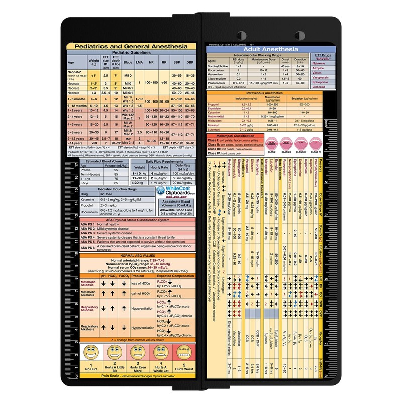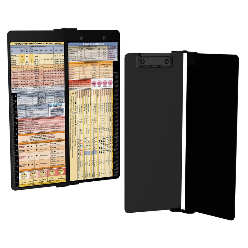 - Full size anesthesia clipboard with medical references on the outside