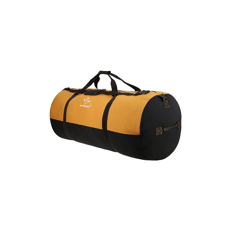 WHITEDUCK Heavy Duty Canvas Duffel Bag for Men and Women - Foldable Military Army Style Duffel Bag, with Full Length Zipper- Outdoors, Travel, Gym & Storage (Standard 24" x 16", Tan & Black)