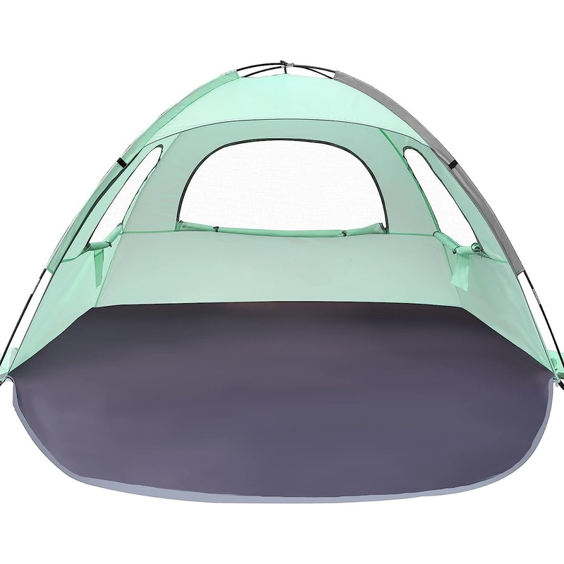 WhiteFang Beach Tent Anti-UV Portable Sun Shade Shelter for 3 Person, Extendable Floor with 3 Ventilating Mesh Windows Plus Carrying Bag, Stakes and Guy Lines (Mint Green)