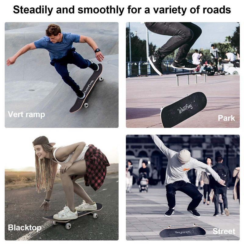 Complete Skateboard, WhiteFang 31''*7.8" , 7 Layer Canadian Maple Skateboard Deck for Outdoor Sports