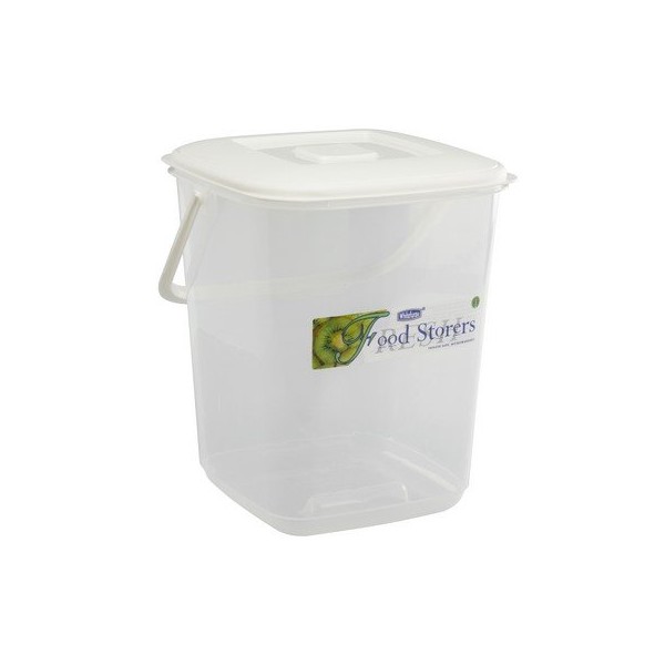 - This handy durable food tub is a great storage solution for any kitchen. The large 10L capacity provide a generous storage tub for organising and storing many types of foods including fresh, cooked or dried foods. Measuring L 25 x W 23 x H 30 cm approx, this tub is idea for foods such as pasta, flour, cereal, sugar, dried fruit, cakes, bread, pastries and much more!