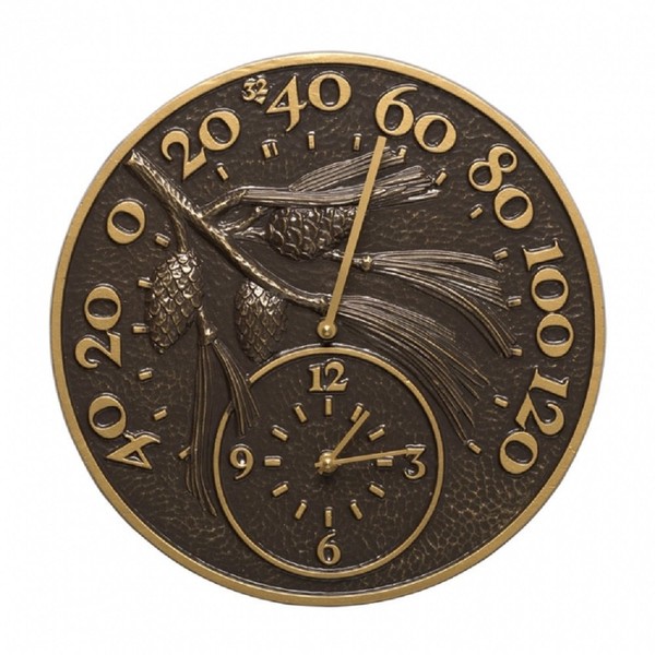 Whitehall Products 01789 Pinecone Thermometer Clock Combo