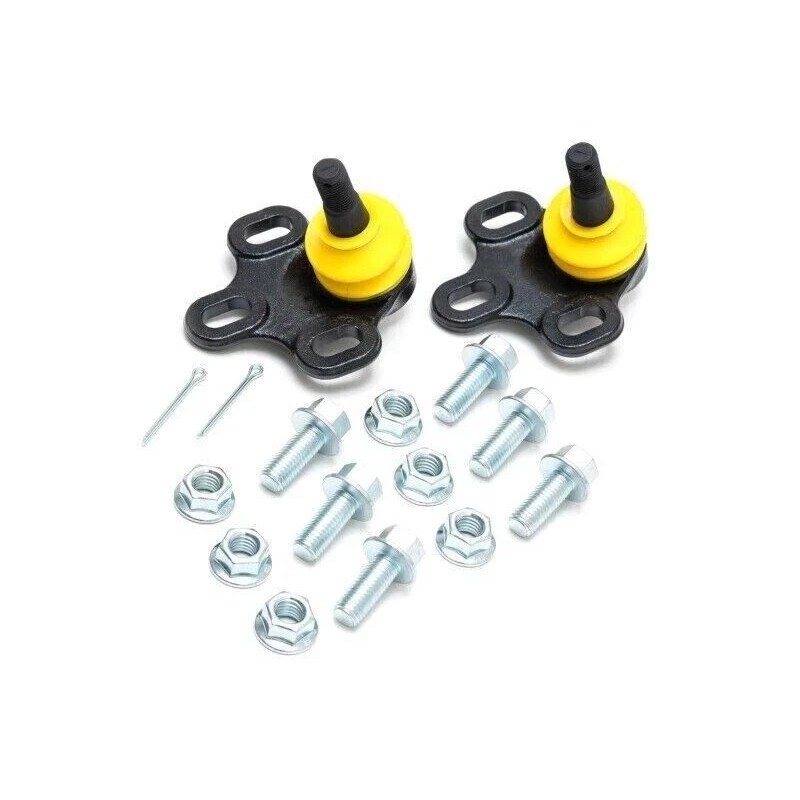 - Items Included: 2× Adjustable front lower ball joints, 2× Roll centre correction plates, Full hardware kit: bolts, jam nuts, cotter pins, Installation guide with torque and alignment setup details