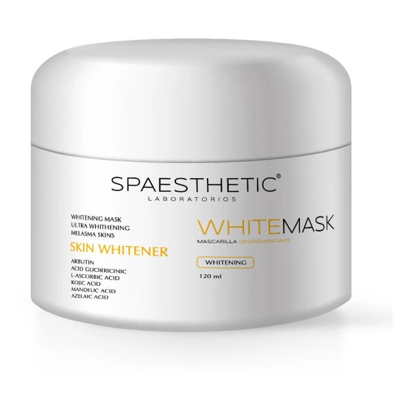 Es una mascarilla facial con actividad despigmentante, contiene una formulacón sinergica de Arbutina, Acido Glicirrinico, Acido Ascorbico, Acido Mandelico, Acido kojico Y Acido azelaico. Unica formulación que inhibe eficazmente la actividadde latirosinasa, por tanto la producción de melanina. Para el cuidado delas manchas que aparecen en la cara, escote, brazos, manos y cuello.