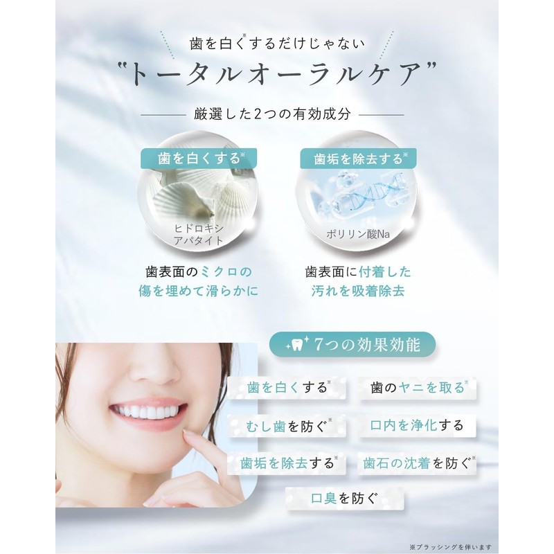 This whitening toothpaste contains hydroxyapatite, which restores the natural whiteness of your teeth without any abrasion. Achieve a bright, clean, and fresh appearance!