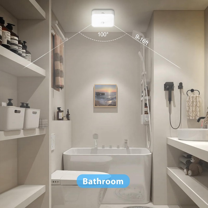 - WhitePoplar Rechargeable Motion Sensor Ceiling Lights Indoor/Outdoor, 500LM Battery Operated Without Wiring, Wireless Lights for Closet Garage Shower Kitchen Stair,Pantry, 5000K Square