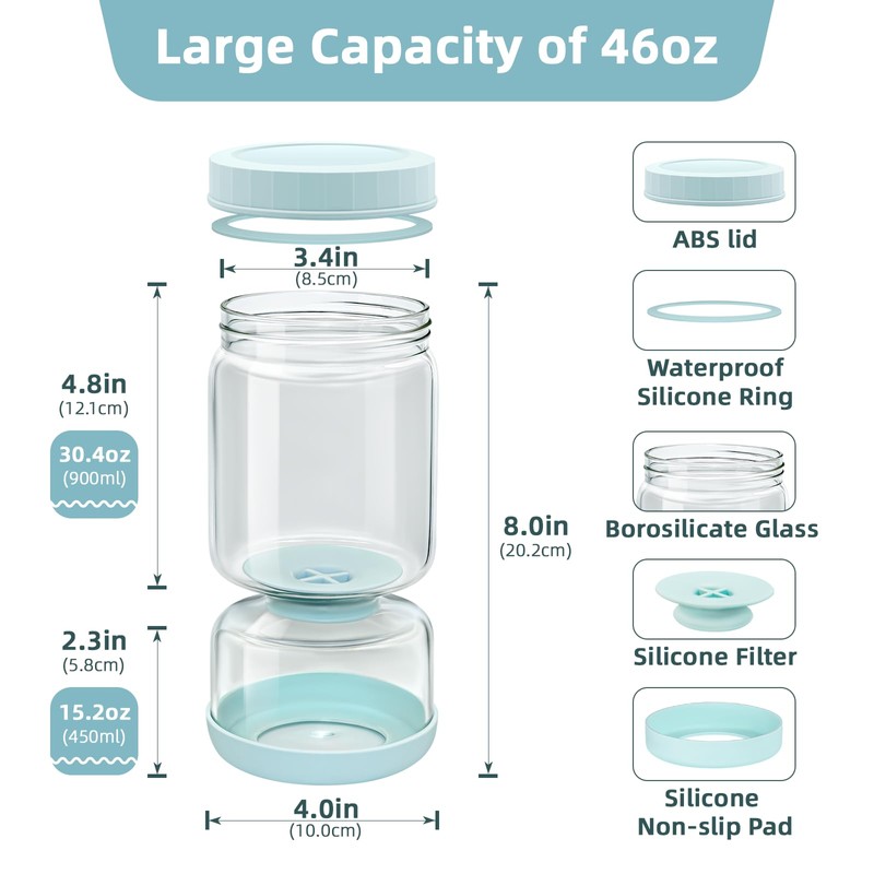 • 【Wide mouth&Detachable Strainer】Wide mouthand detachable strainer design of the glass pickle jar make cleaning and use easier and more convenient;The pickle holder with strainer flip has a wide mouth design, measuring 8.5cm/3.4 inches in diameter ,which can easily take and pickle food,clean the bottle,even the bottom. A pickle flip jar with a built-in soft silicone strainer,which is detachable and cleanable at any time,makes everything quick and easy!