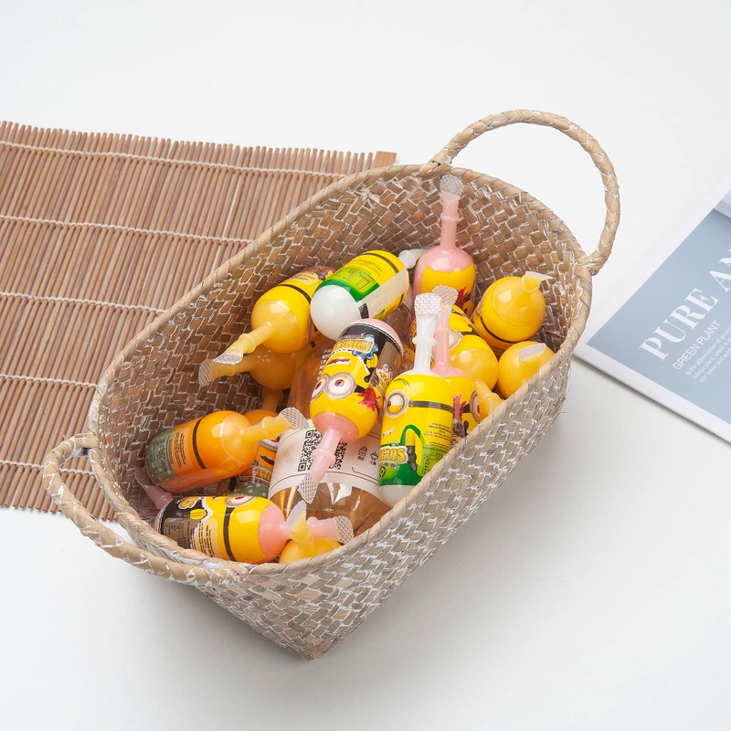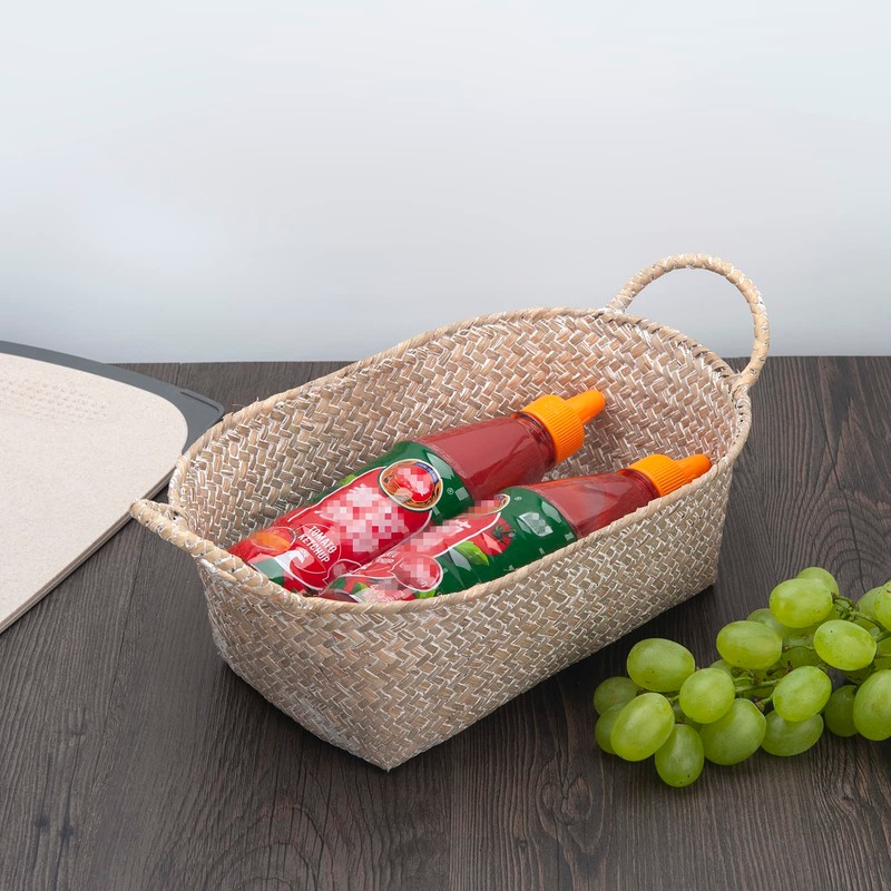 The storage basket is made of 100% natural handwoven seagrass, insert metal frame for firm and keep shape; designed with handles for easy carrying