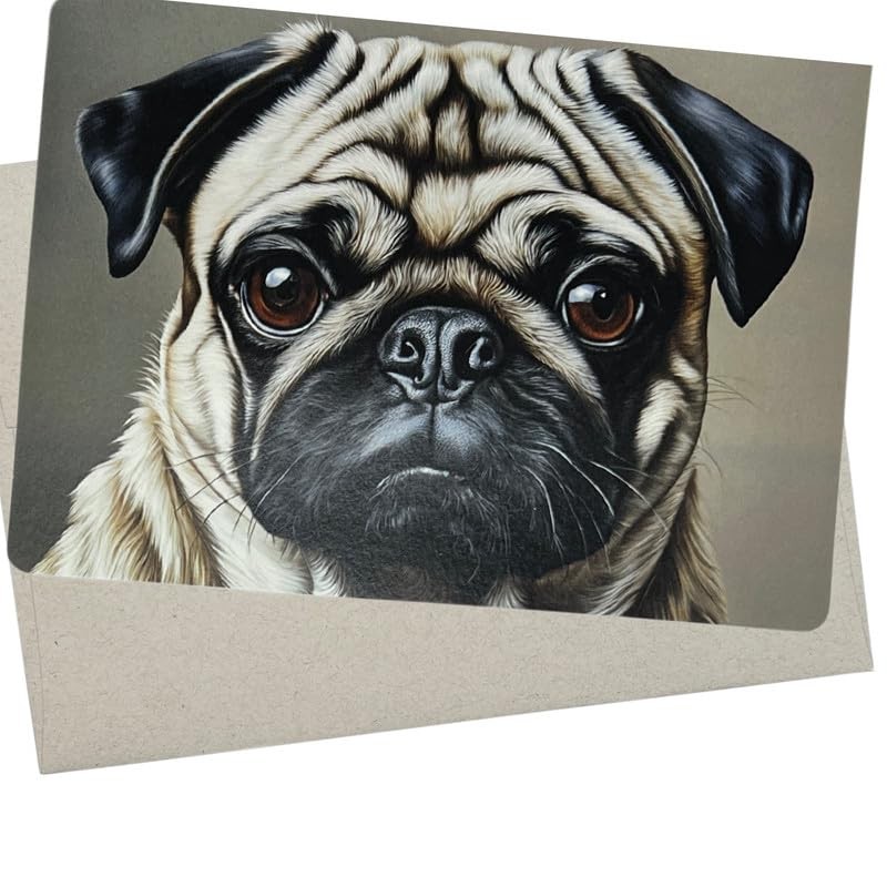 - Pug dog breed card for lovers of pugs and moms and dads of this cute breed. Sadly, this tasteful card can be nice for a pet sympathy card with words of condolences.