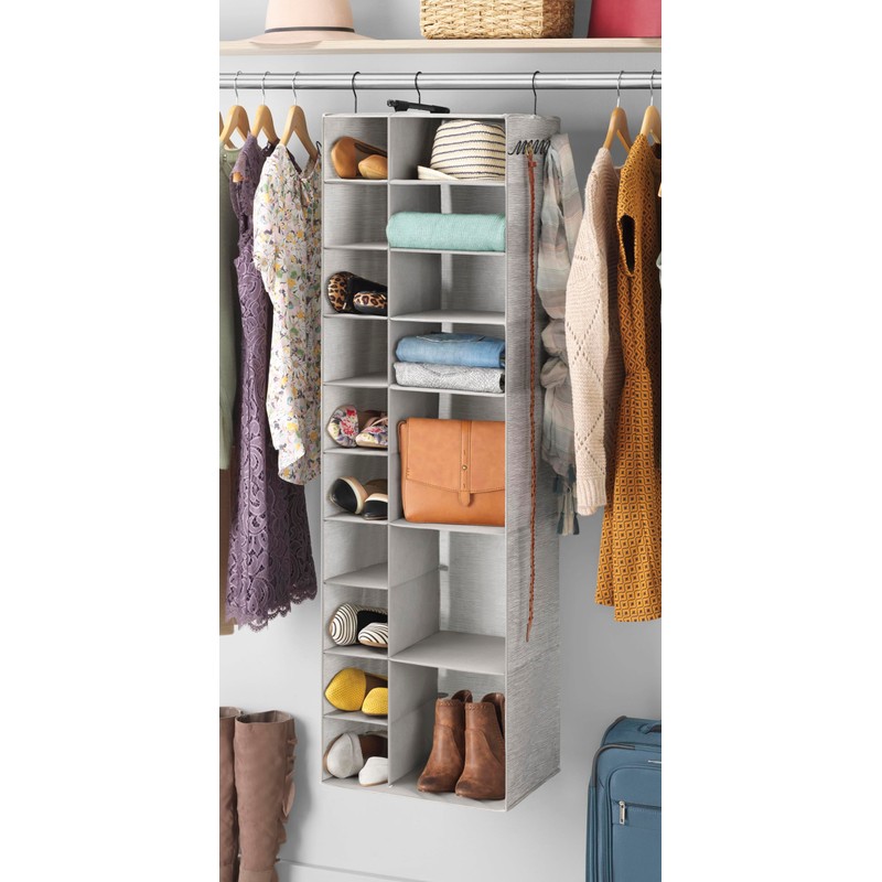 Whitmor Hanging Shoe & Sweater Organizer with Accessory Hooks - Space-Dyed Grey