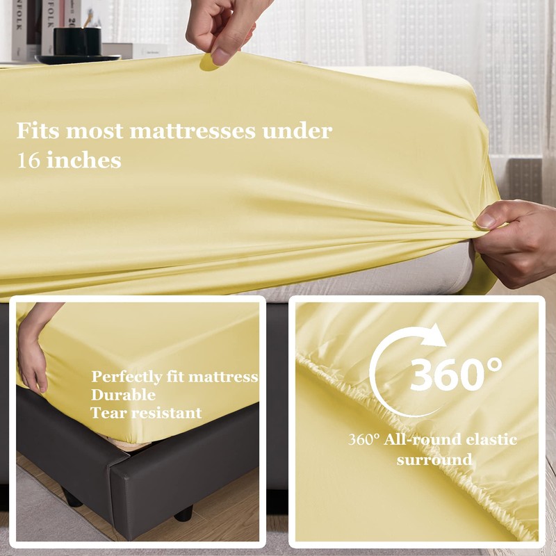 16 inch Extra Deep Pocket and Fully Elasticity Fitted Sheet, Easy to fit for most mattress thicker below 16 inch. Premium Elasticity allows the fitted sheet to fit perfectly on the mattress and not easily to get loose after a while use.