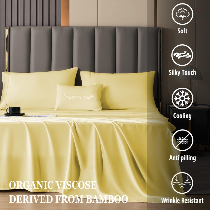 Whitney Home Textile Full Size Sheet Set - Rayon Derived from Bamboo, Luxury Cooling Bed Sheets, 16" Extra Deep Pocket, Soft & Breathable Hotel Bedding Sheets and Pillowcases Sets