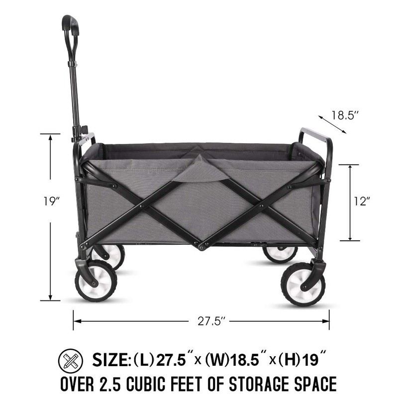 WHITSUNDAY Collapsible Folding Garden Outdoor Park Utility Wagon Picnic Camping Cart 5“ Solid Rubber Wheels (Grey)