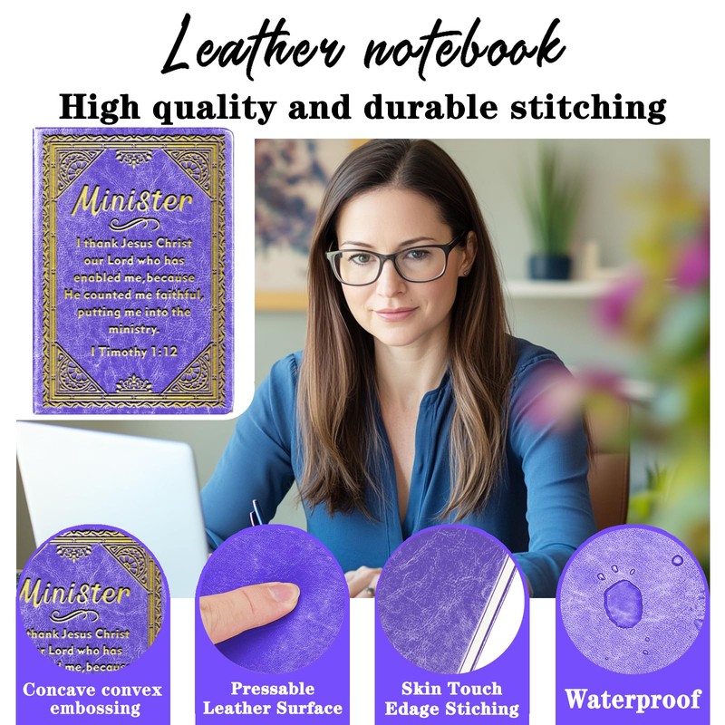 - Engraved on the front:“Minister---I thank Jesus Christ our Lord who has enable me,because He counted me faithful,putting me into the ministry.”On the back is engraved:Peace doves, crosses, books.These notebook gifts, designed in a retro style and printed with some pious words, surprise the minister with this sentimental gift and express your sincere love and gratitude to the minister.