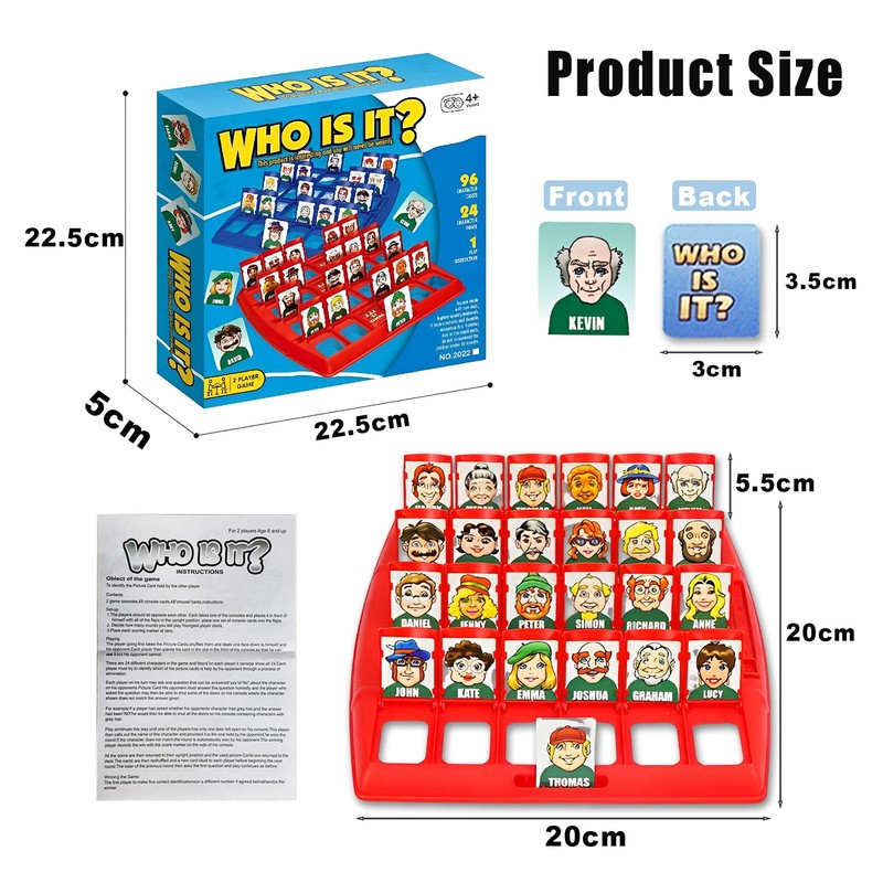 - Who is it game original: Discover the fascinating original game of "Guess Who" with 2 game boards and 96 character cards, including usage and game instructions (English language not guaranteed). It has been carefully assembled to create shared playtime and unforgettable experiences for you and your loved ones.