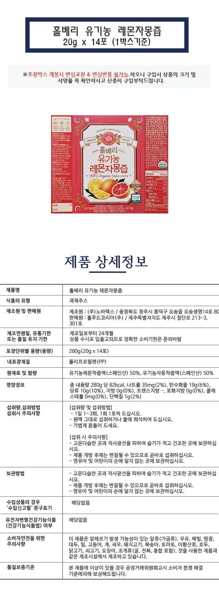 홀베리 유기농 레몬자몽즙