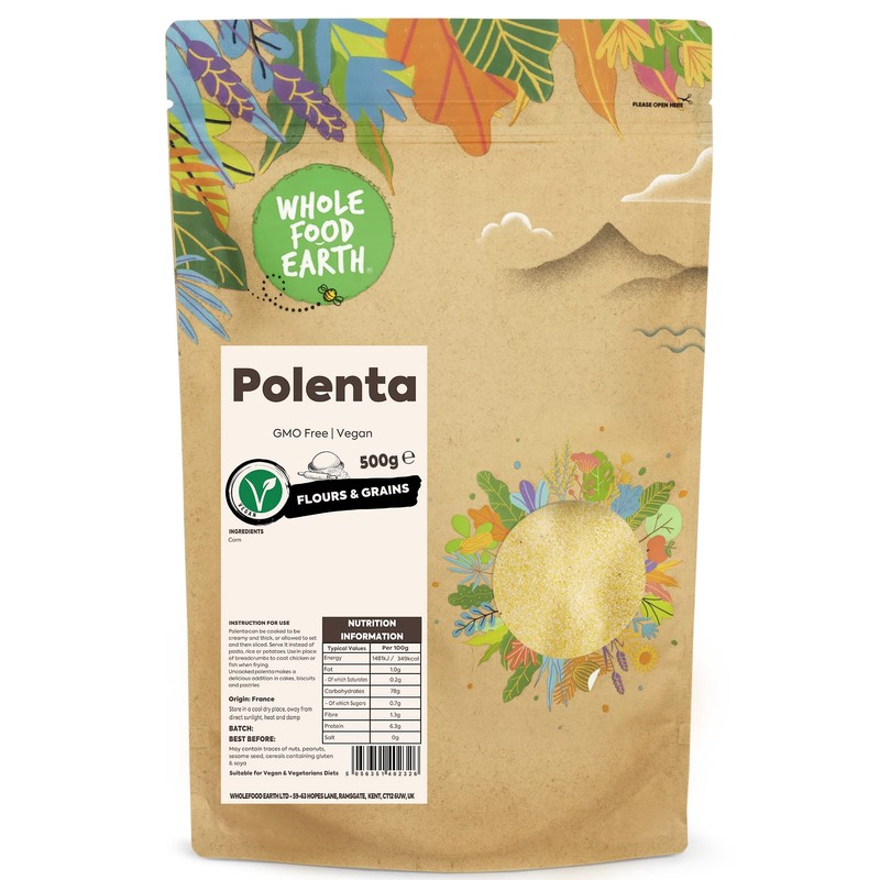 - ✔ HIGH-QUALITY INGREDIENTS: It has low fat and calorie content, and is high in fibre and protein. It's also a terrific method to get other essential nutrients into your diet, such as minerals and vitamins. Polenta maize meal is GMO-free and vegan-friendly.