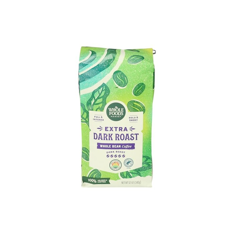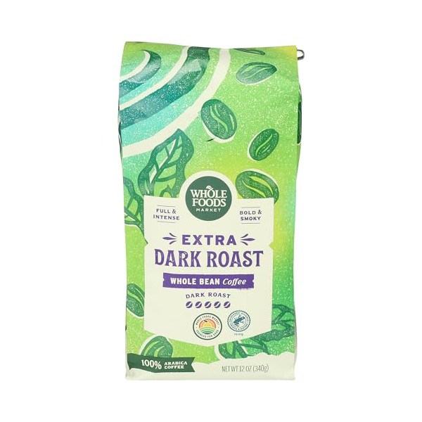 Whole Foods Market, Extra Dark Roast Whole Bean Coffee, Full & Intense, Bold & Smoky, 12 Ounce