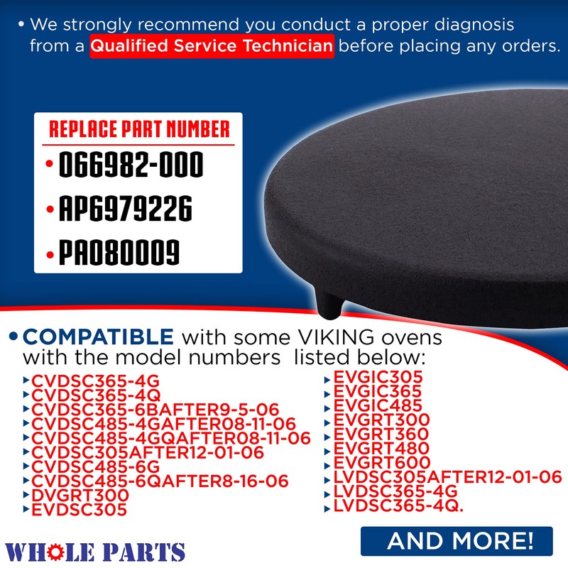 Whole Parts Burner Cap (Black) Part # PA080015, Replacement and Compatible With Some Viking Gas Ranges Appliance - Replaces 066982-000, AP6979226, PA080009 Models - Non-OEM Viking Parts & Accessories