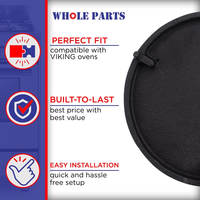 Whole Parts Burner Cap (Black) Part # PA080015, Replacement and Compatible With Some Viking Gas Ranges Appliance - Replaces 066982-000, AP6979226, PA080009 Models - Non-OEM Viking Parts & Accessories