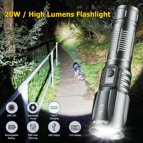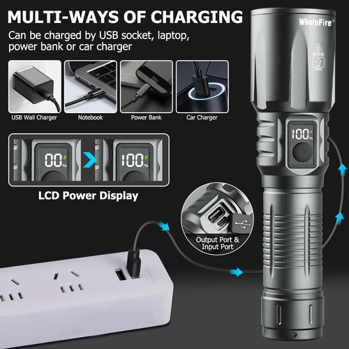 Wholefire 9000000 Lumens Super Bright LED Flashlight Tactical Rechargeable LED Work Lights