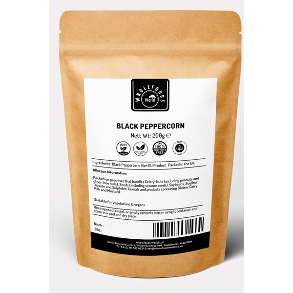 Wholefoods World Black Peppercorn | Suitable for Vegetarians and Vegans (200, Grams)
