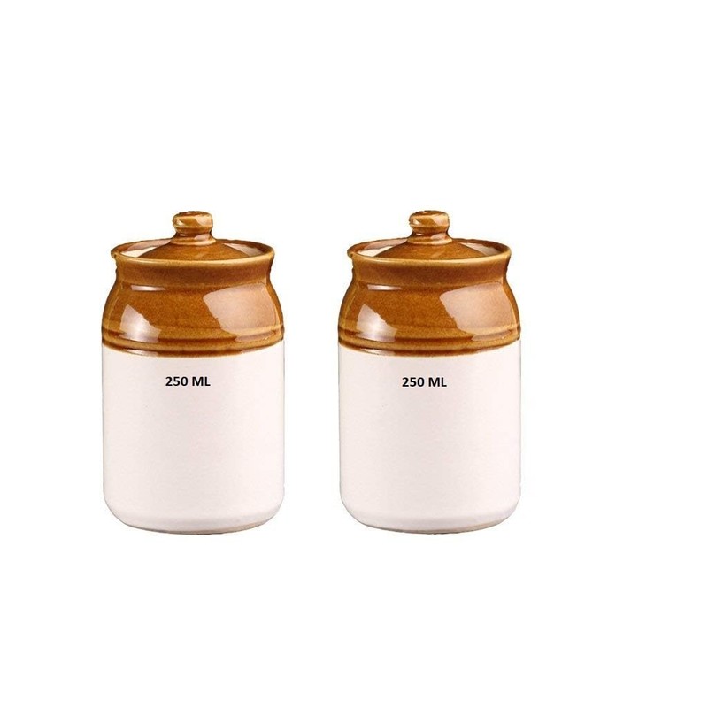 WHOLELIFEOBJECTS Ceramic Handmade Pickle Jar Set with Lid, Kitchen storage container sets, Crockery jars, Achar Handi, Dining Table Pickels Containers Set of - 2 Small (250ml)