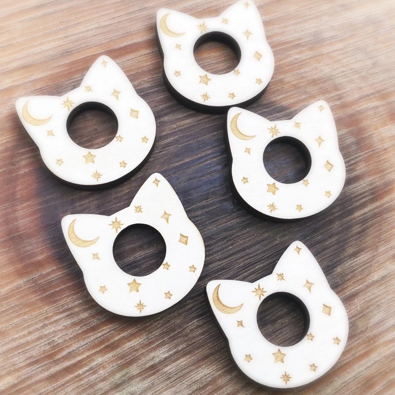 Wholesale lot of 30 mini Baltic birch wood cat sphere holder/display stands. Stands measure approximately 1.5 inches in length and are cut from 6mm premium Baltic birch wood.