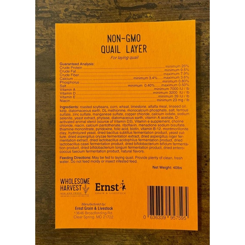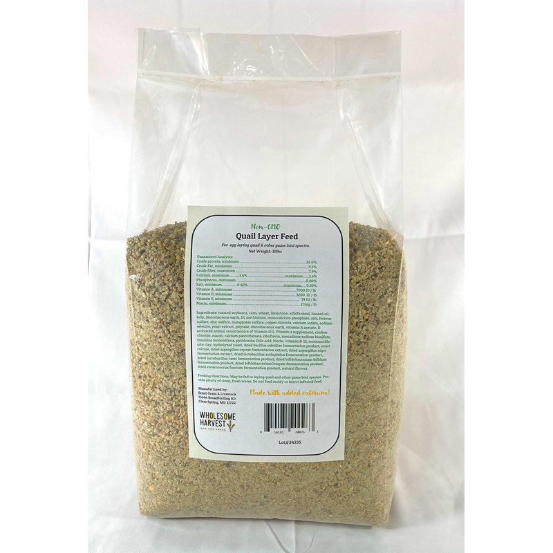 - Non-GMO Grain Blend: Made with a wholesome, Non-GMO blend of grains, our quail layer feed is free from byproducts, providing a natural, nutritious diet essential for healthy egg production and overall quail wellness.