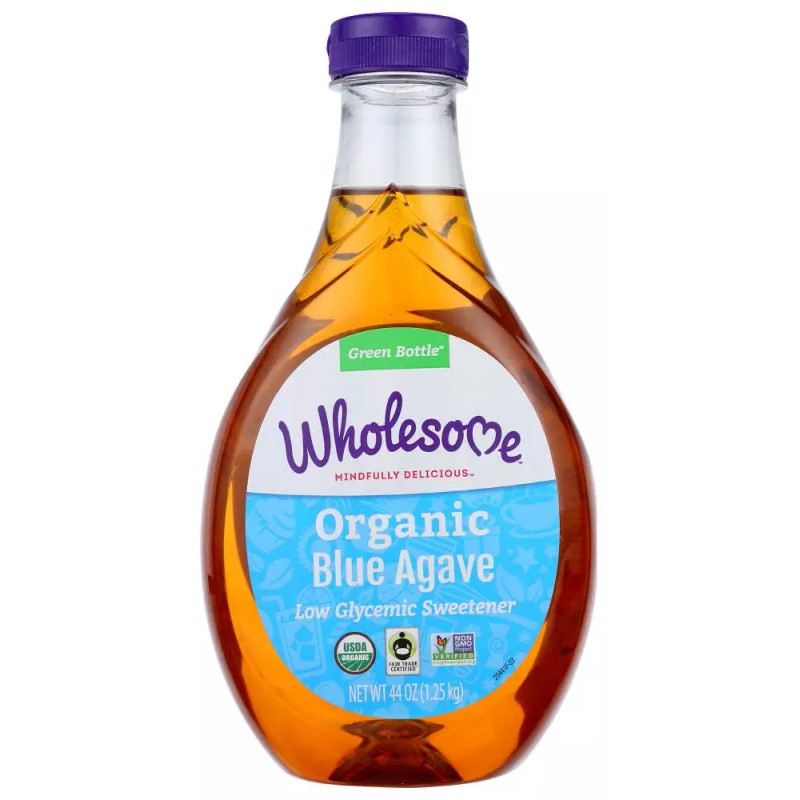 Wholesome! Blue Agave, Organic is made from certified non-GMO ingredients and is 25% sweeter than sugar. Our agave nectar is a certified Fair Trade. This sweetener is suitable for gluten-free, vegan and glycemic index diets and can be used as a sweetener in many recipes. This bottle holds 44 oz. of organic blue agave nectar.