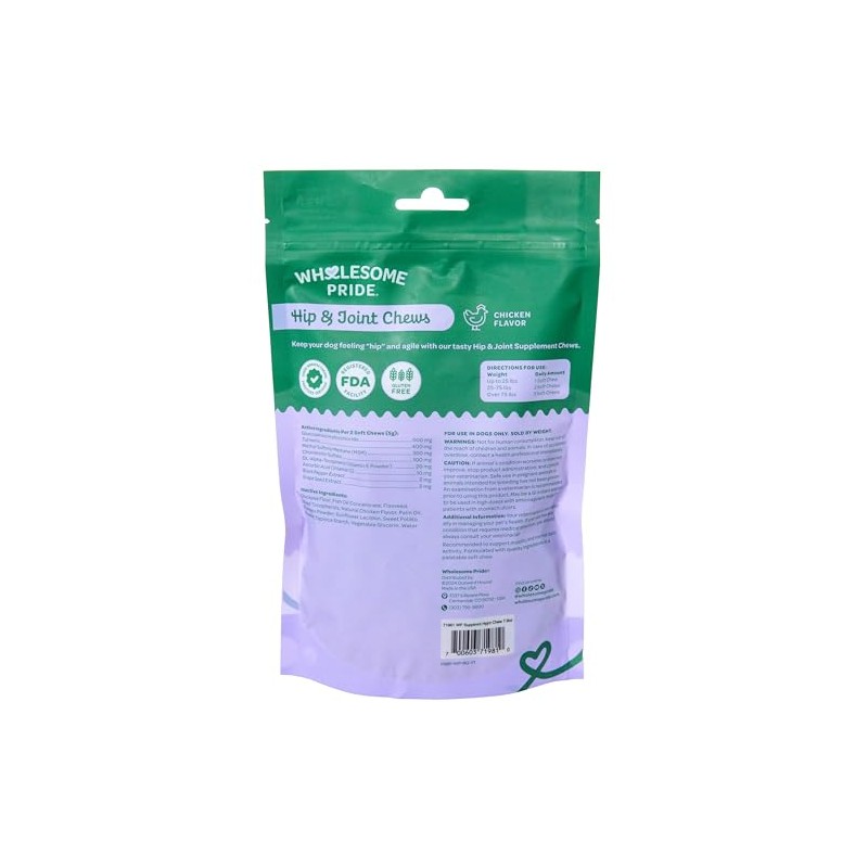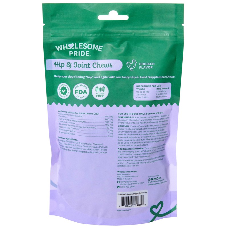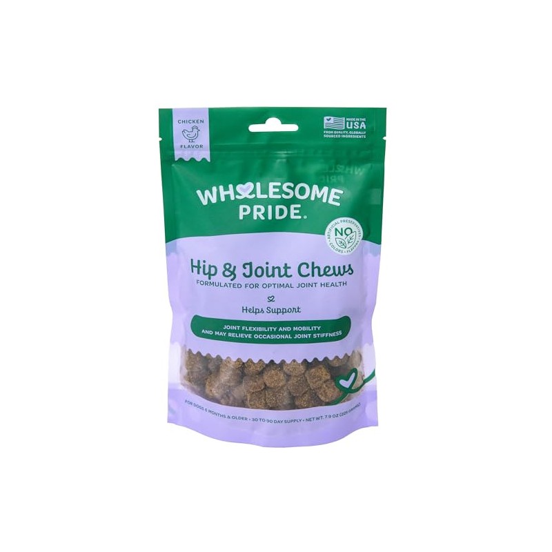 Wholesome Pride Hip and Joint Chews for Dogs, Mobility Bites Supplement with Glucosamine, Chondroitin, MSM, Anti-inflammatory Turmeric, and Vitamin C and E - Chicken Flavor - 30 to 90 Day Supply