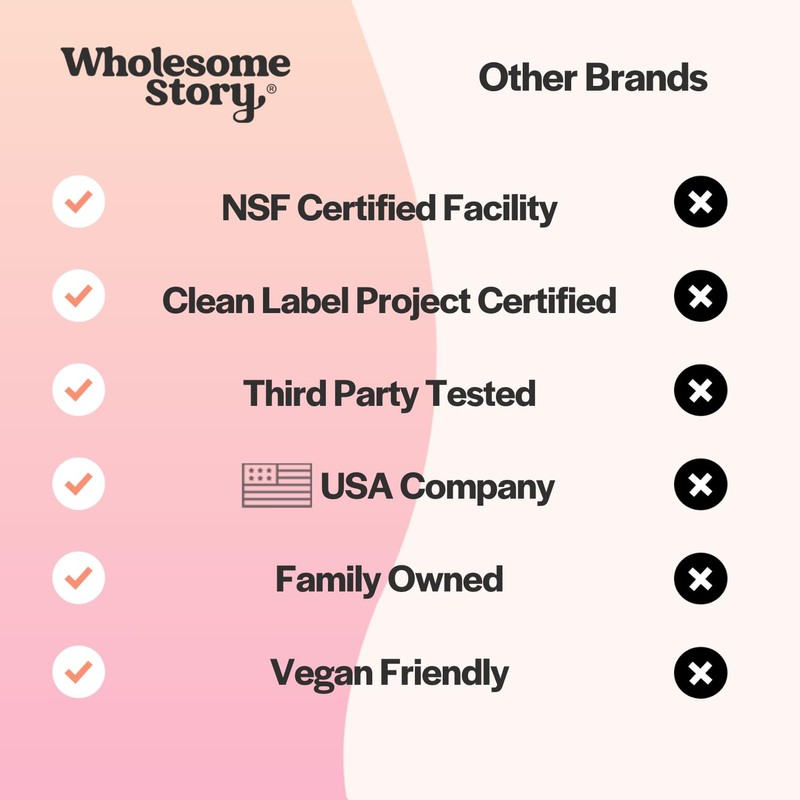 - Our Wholesome Promise: We are family-owned & proud to have our products 3P tested & certified by the Clean Label Project. We understand that each body and journey is unique. If our supplements don't work for you, let us know & we will make it right