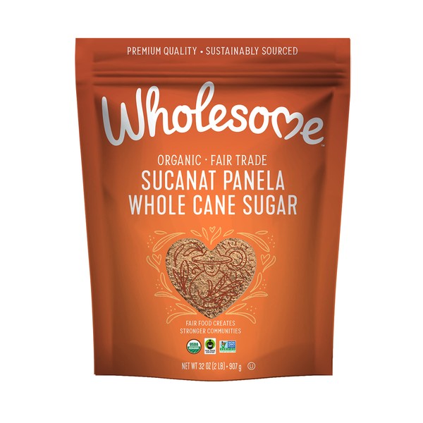 Wholesome Sweeteners 32-Ounce Organic Sucanat Panela Whole Cane Sugar, Fair Trade, Non-GMO Project Verified, Gluten Free & Vegan for Baking, Sprinkling and More, 1 Pack