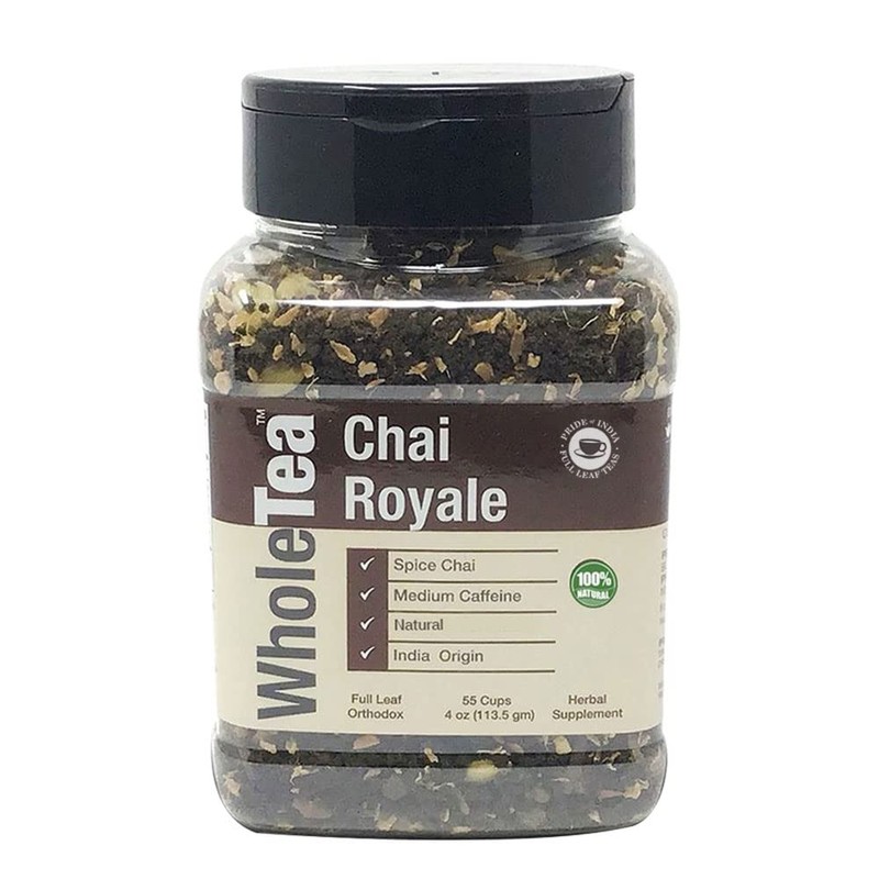 WHOLETEA Natural Chai Royale, 4 oz(113.5 gm) Full Leaf Gourmet Jar - Makes 55 Cups - Medium Caffeine - Spice Chai