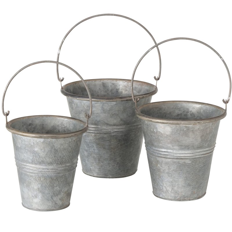 - Bring a country farmhouse feel to your home, garden, balcony or event with these small galvanized metal flower bucket planters.