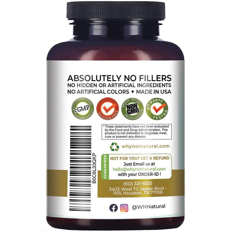 Why Not Natural 4-in-1 Organic Black Maca Root, Ashwagandha, Fenugreek, Panax Ginseng Capsules, Supplement for Men and Women
