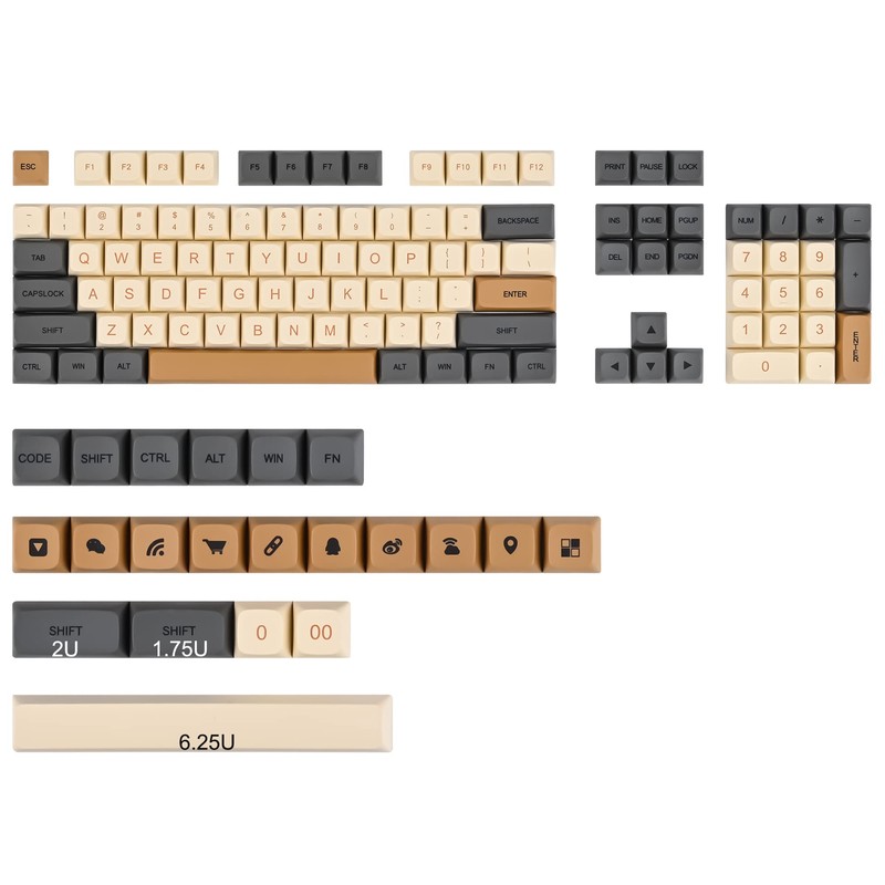 - 【Glimmer Theme Style】: The keycaps is glimmer keycaps. The design is made up of brown, beige, dark grey three colors,Minimalist and retro is the keycaps theme.