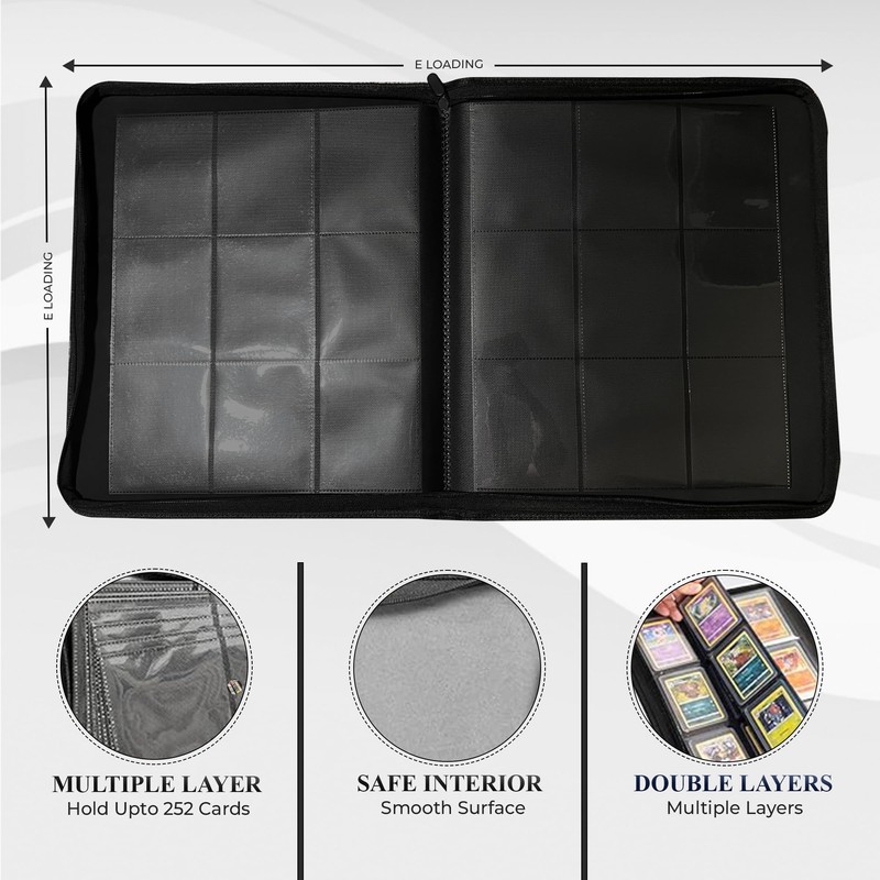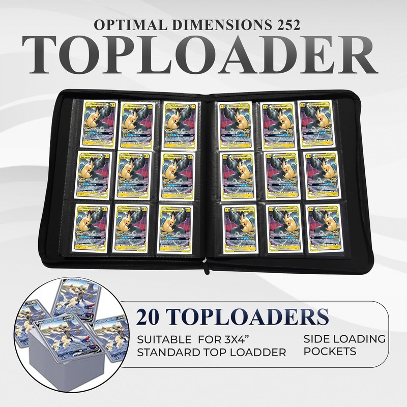 - 【LARGE CAPACITY】Holds 252 toploaders in 9 pockets per page. Sleek Toploader Binder design allows maximum storage without loose pages or rings. Protect playing cards in style