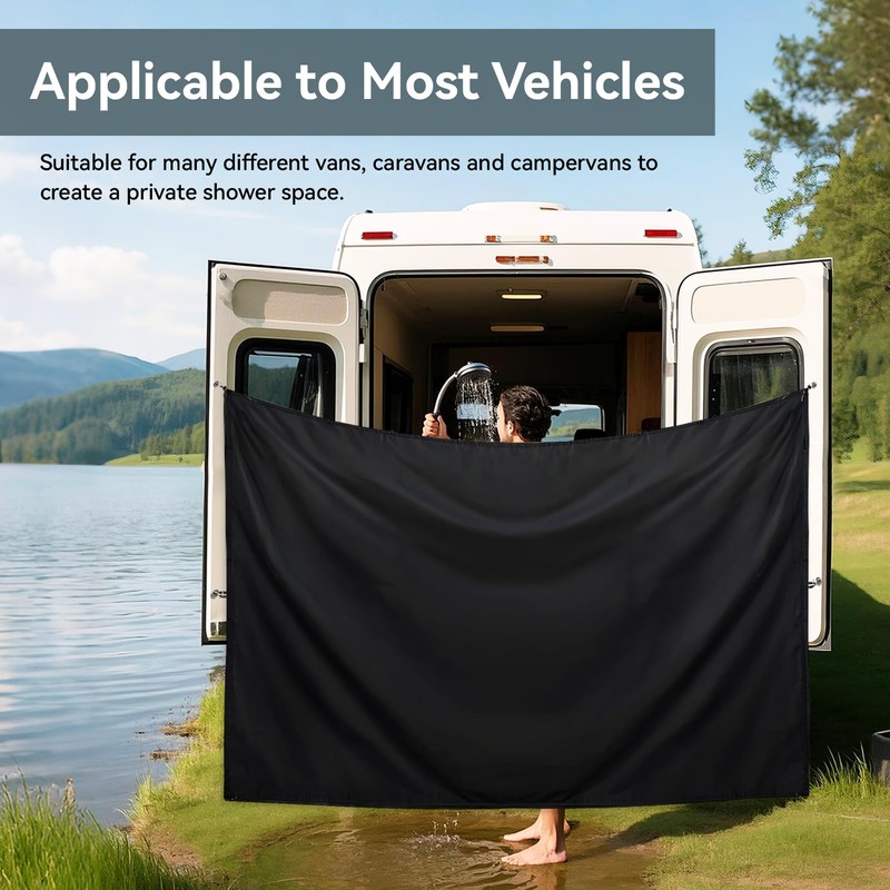 • Durable Quality ; Made from black Oxford fabric, this shower curtain offers lasting performance for vehicle use. The material is designed to maintain its quality through repeated use as a shower enclosure. Its sturdy construction provides reliable privacy and water protection where you need it.